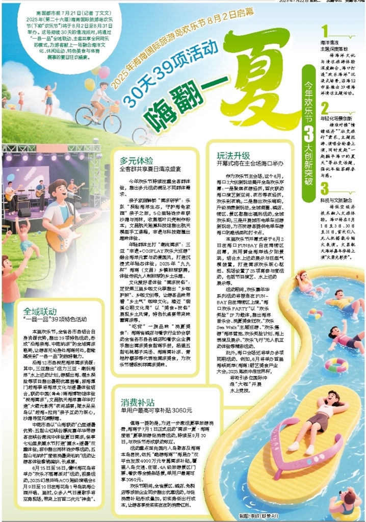 值得一提的是,为进一步激活夏季旅游消费,海南于7月1日正式启动“清凉一夏・海南度假”夏季旅游促消费活动,持续至9月30日,与欢乐节形成联动效应。