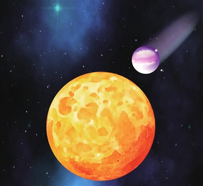 现在,科学家还在给它“量身高”和“称体重”。目前知道的是:它很可能是一颗小彗星,肚子里装着冰,外面裹着灰尘和石头。当它越来越靠近太阳时,肚子里的冰会变成气体,像开水壶里冒出的白汽,呼地一下冲出来,把它包在一团亮闪闪的“云”里,还会拖出一条长长的尾巴。科学家估计,它的冰脑袋直径不到6公里,差不多是6000个小朋友手拉手排成一行的长度。