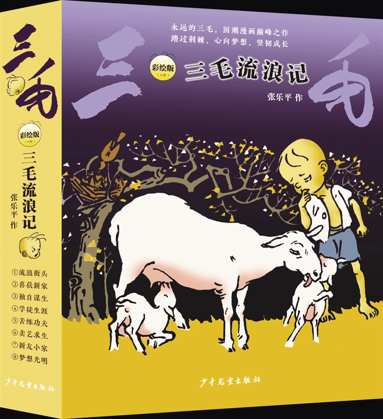三毛虽然90岁了,但是并没有“躺平”。出版社叔叔阿姨给他换上彩色新衣,出了典藏版、彩图版、学生版,连法语、意大利语版都飞到国外去。最新推出的《三毛漫画全集》足足有九大本,收了一千多幅漫画,是目前最全的“三毛大合集”。
