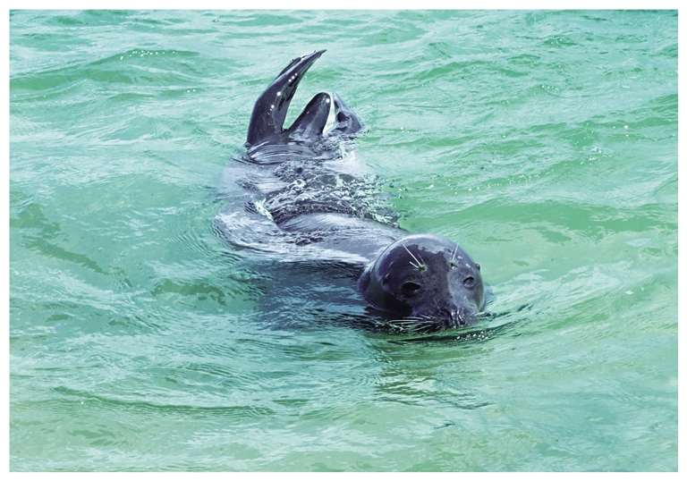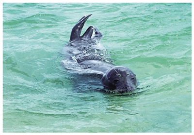 9月4日,海南水生野生动物救助中心高级兽医庞雷于近海观察了海豹“阿侬”的行为表现。他指出,“阿侬”目前精神良好、游动活跃。