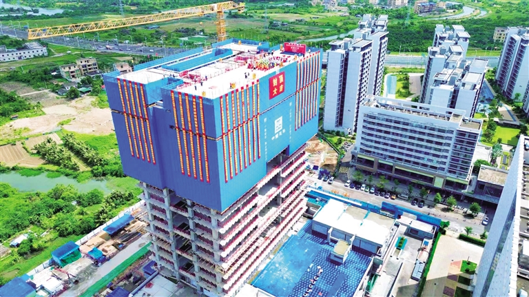 南国都市报9月29日讯(记者 易帆 通讯员 苏康镇)9月27日,随着最后一块屋面混凝土浇筑完成,海口江东新区中建二局海南咨询设计产业基地项目主体结构全面封顶,标志着该项目建设取得突破性进展,顺利按照计划实现关键节点目标。