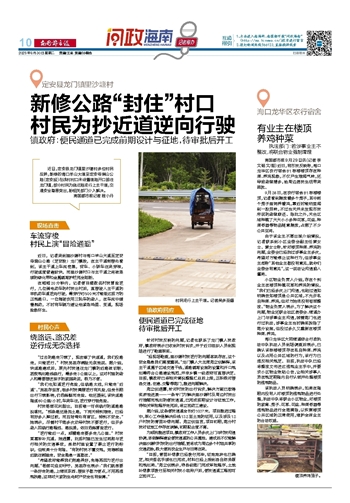 近日,定安县龙门镇里沙塘村多位村民反映,新修的海口羊山大道至定安母瑞山公路(定安段)在该村村口未设置道路开口前往龙门镇,部分村民为绕近路逆行上主干道,交通安全隐患突出,盼相关部门介入解决。
