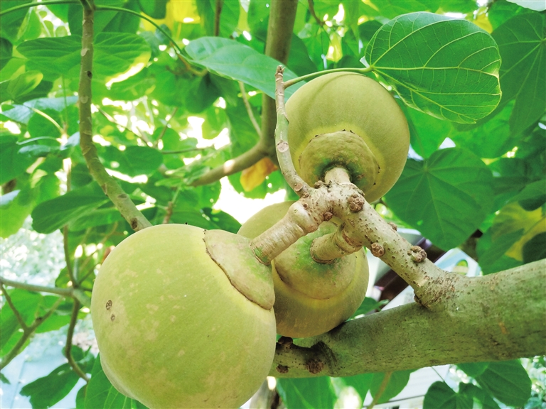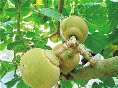 椰蜜果从2016年引自南美洲,历经9年精心摸索与培育,基地攻克了该品种保花保果等关键技术,使得其坐果率和果实品质大幅提升,口感基本达到原产国水准,其中培育出的最大单果重量达到1107克(约2.2斤)。从2020年首次开花,到2022年零星结果,再到今年20亩果园全部挂果,终于实现了规模化产出。
