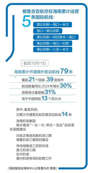 “以国际航线为媒,我们紧密联动主管部门、机场、航司、货主等各方力量,聚力打造海南自贸港跨境电商集散地,将‘中国制造’更快送往广阔的海外市场。”王昱燃说。目前,格鲁吉亚航空在海南累计运营第比利斯—海口—米兰、海口—第比利斯、第比利斯—特拉维夫—海口、第比利斯—海口—巴黎、第比利斯—三亚—米兰等5条国际航线。