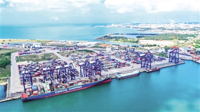 航线网络的“织密与延伸”,是拉动货物吞吐量增长的“强引擎”。目前,洋浦港已累计开通63条内外贸航线,其中内贸航线30条、外贸航线33条,航线覆盖范围已延伸至东南亚、印巴、中东等全球关键贸易区域,有效吸引跨区域货流向洋浦集聚。此外,通航效率的优化,成为提升港口竞争力、吸引货主与船公司的“软实力”。今年10月10日,洋浦港航道中外段首次实现万吨级船舶双向通航。实际运营数据显示,相较于传统单向通航模式,双向通航使船舶进港待泊时间缩短近30分钟,大幅提升了货物周转效率,降低了物流时间成本。这种“流程优化+技术创新”的效率升级,让洋浦港在区域港口竞争中更具吸引力,将进一步助推货物吞吐量攀升。