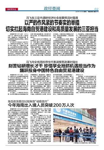 冯飞在三亚市调研经济社会发展情况时强调~~~