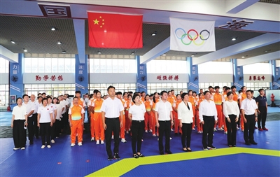 第十五届全国运动会海南代表团成立大会暨出征仪式现场。(记者陈望 摄)