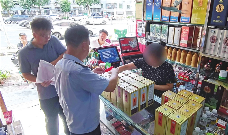 10月15日当天,执法人员在贵州茅台酒厂(集团)保健酒业有限公司、习酒股份有限公司、山西杏花村汾酒厂股份有限公司三家授权委托打假办人员配合下,先后检查了美俗路、丘海一横路等20余家烟酒销售商家,重点检查经营者所售白酒是否假冒侵权等。
