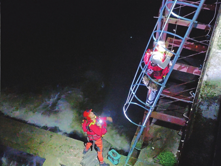 南国都市报10月16日讯(记者 姚皓 通讯员 陈焕林)10月15日晚,两名男子在澄迈县金江镇南渡江水电站大坝底部平台钓鱼时,因江水水位变化及大坝结构限制,无法自行返回安全区域,无奈只能报警求助。