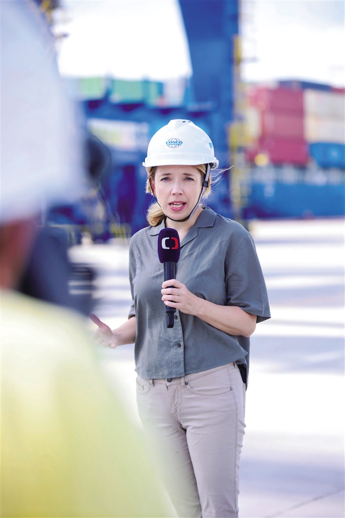 次日,采访团深入琼西与琼东,在洋浦国际集装箱码头、海南比勒菲尔德应用科学大学与博鳌乐城国际医疗旅游先行区之间,感受海南在航运、教育、医疗领域的开放活力。洋浦国际集装箱码头现场,岸桥“巨臂”有序作业,正奋力擘画双20万吨级泊位格局、年通过能力突破500万标箱的蓝图。海南比勒菲尔德应用科学大学内,学生用流利外语畅谈规划。乐城先行区里,全球创新药械集中展示,让中外记者印象深刻。