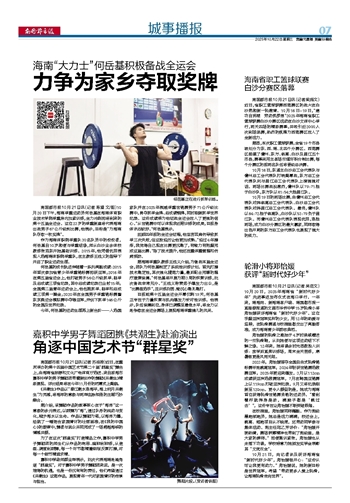 南国都市报10月21日讯(记者 苏桂除)近日,在重庆举办的第十四届中国艺术节第二十届“群星奖”舞台上,由海南省旅游和文化广电体育厅选送、来自琼海市嘉积中学的男子舞蹈团带着新创作的舞蹈《共潮生》精彩展现。评比结果将在今年11月份的闭幕式上揭晓。