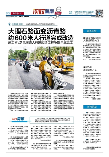 问政海南·追踪《海口龙昆南路大理石路面湿滑易摔倒》~~~施工方:龙昆南路人行道改造工程争取年底完工