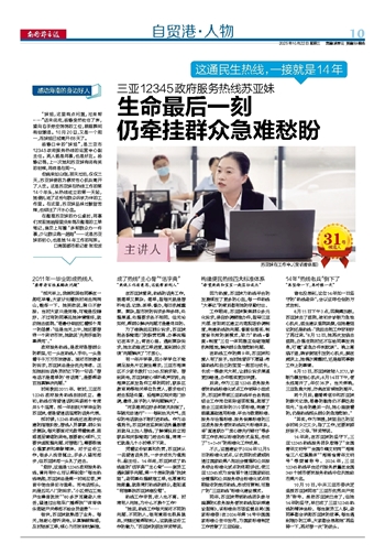 这通民生热线,一接就是14年 三亚12345政府服务热线苏亚妹~~~