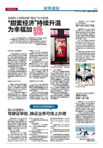 海南新人结婚请柬“霸屏”美兰机场~~~