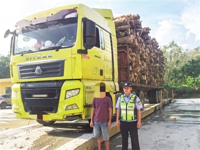 经过:琼中公安交警执勤时发现一辆重型半挂牵引车载满木材,疑似超载。经称重,该车超载50%以上。