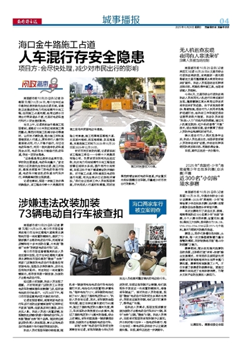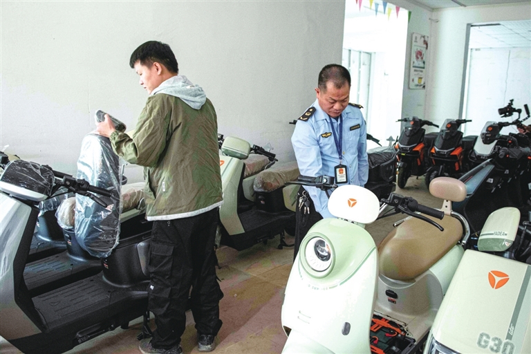 经过数小时观察,执法人员发现了猫腻。不时有两家门店的员工从存放电动车的铺面推车到销售门店,经安装电池后交付给客户。10月24日下午,海口市市场监管局决定开展收网行动。