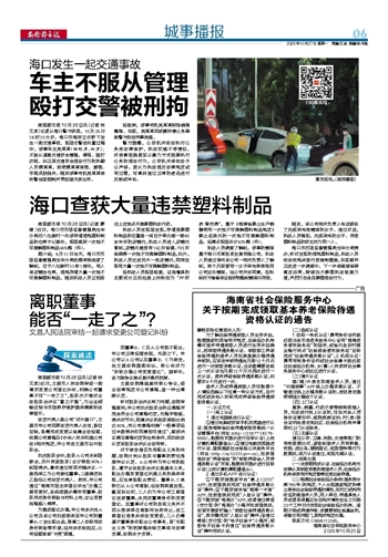 南国都市报10月26日讯(记者 林文泉)记者从海口警方获悉,10月25日18时30分许,海口市海府立交桥下发生一起交通事故。现场交警在处置过程中,涉事车主吴某某(性别:男,46岁),不服从道路交通安全管理,辱骂、殴打劝阻、纠正其交通安全违法行为的执勤人员蔡某某,致使蔡某某面部、膝部、手部皮肤挫伤。随后涉事司机吴某某被民警当场控制并带回蓝天派出所。