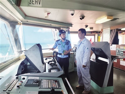 “速度蝶变”的背后,是科技赋能的智慧监管。在洋浦边检站指挥中心,高清大屏实时滚动着港区、锚地、船舶舱室等多路视频信号;水下机器人、可燃气体探测仪等“黑科技”全天候在线,构成了口岸的“新质战斗力”。相较于技术的革新,人的作用同样不可或缺。“我们将服务窗口前移9公里,大幅提高办检效率,全面落实出入境船舶零等待、手续办理零等候、便民服务零距离的‘三零’服务承诺。让每一艘船舶都能感受到‘洋浦速度’,让每一位服务对象都能感受到暖心服务。”洋浦边检站执勤一队民警李欣告诉记者。