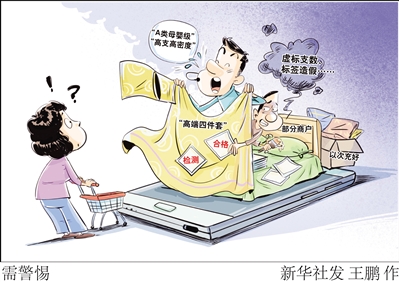 标签信息是假的,检测报告也是假的……近日,“新华视点”记者走访多地家纺市场发现,一些在售床上用品“高端四件套”存在以次充好等问题。