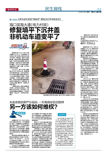 新闻追踪《非机动车道成“搓板路” 井盖凹凸不平隐患大》海口滨海大道(电力村段)~~~
