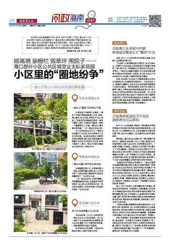 砌高墙 装栅栏 毁草坪 围院子……海口部分小区公共区域变业主私家花园~~~一楼业主私占小区公共区域现象普遍