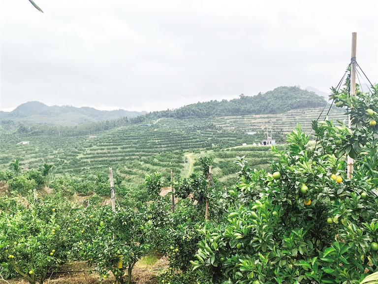 2017年底建基地,2023年开始挂果,海南有橙福农业有限公司是目前琼中绿橙种植面积最大的种植企业。公司负责人袁诗博表示:“目前有橙福绿橙种植基地约有1000亩,我们还新开发了400亩基地,种植的小苗还未结果。今年预计产量能达到160万斤。”