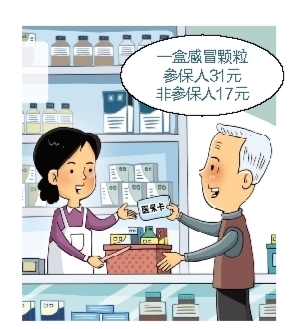 福建福州一名市民接受采访时说,他在该市一家三甲医院附近的药店买药,发现一盒三九感冒灵刷医保卡要22元,而现金购买价格仅为12.8元。