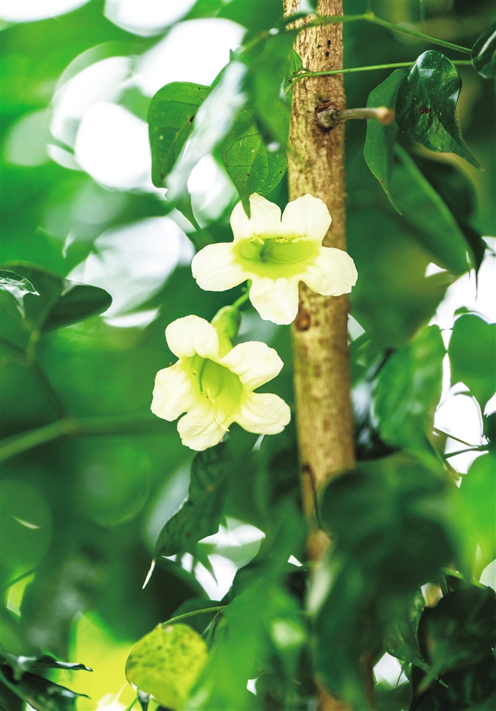 这棵“叛逆树”来头不小:紫葳科菜豆树属的落叶乔木,能长到20米高,浅灰树皮带着深纵裂,羽状复叶像层层叠叠的绿云。最萌的是它的花:钟状淡黄色花冠裹着“宅家花蕊”,雄蕊雌蕊躲在花冠筒里不肯露头,活脱脱翻版“娇羞版毛地黄钓钟柳”,可爱值拉满!