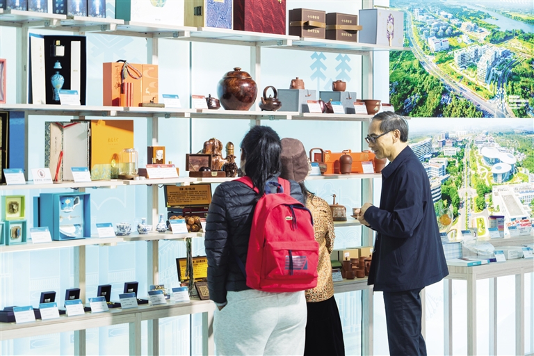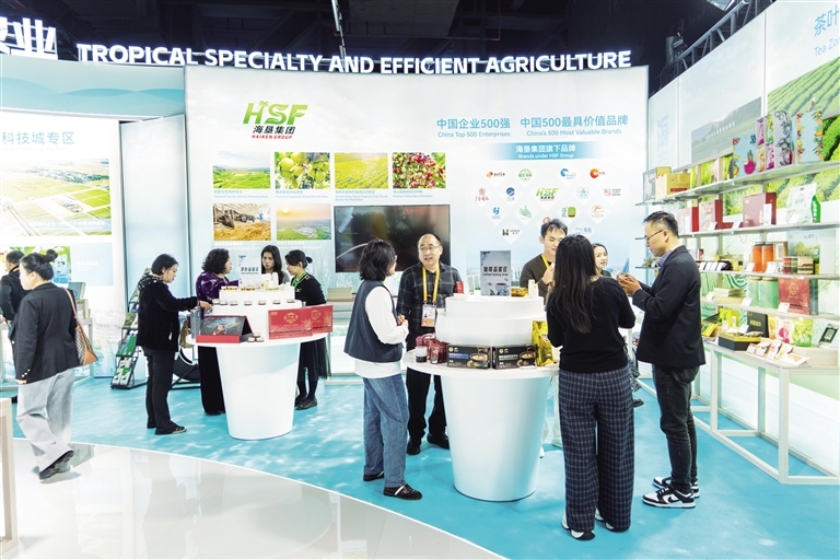 此次海南馆内的展品既有历史传承,也有创新潮品。比如展示的黎锦服饰,既融合了传统的黎族纹饰,又结合现代服装面料、时尚特点,传统工艺与现代剪裁融合,兼具文化底蕴与穿搭实用性,尽显中国非遗时尚融合魅力与文化创新实力。馆内展出的紫金陶系列陶器利用海南特有紫金陶土烧制,具有不渗水、不挂渣的特点,被誉为“会呼吸的陶器”。由海南绽优投资有限公司提供的情感陪伴机器人和AI智能毛绒潮玩,拥有仿生心智成长模型与类人情感交互引擎,在与用户的互动中慢慢学习成长,核心特点是“越陪伴、越懂你”。受加工增值内销免关税政策红利吸引,在洋浦开发区已投资建设3.5亿元的中熬汤业(海南)科技有限公司带来了鸡骨汤、牛骨汤、猪骨汤和糟粕醋大骨汤等4件展品,希望依托本届进博会进一步展示企业发展成果,寻找合作机遇。