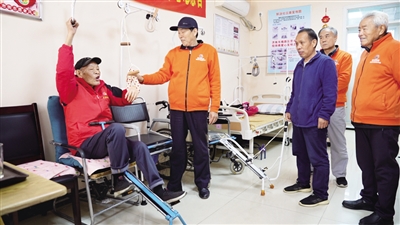 “胡老师,今天练得怎么样?身体舒服些了吗?”“好多了,感觉手不发麻了。”在山东省济南市槐荫区营市街街道综合养老服务中心,70岁的银龄志愿者倪玉勇正在指导81岁的胡苏本老人活动身体。此时,胡苏本坐在装有滑轮吊环的椅子上,用一只手拉动牵引绳,带动另一侧手臂被动拉伸——这是倪玉勇带领“倪师傅爱心发明志愿团队”专为行动不便的老人发明的“活动神器”之一。