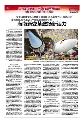 第003版:学习贯彻党的二十届四中全会精神 高标准建设海南自由贸易港