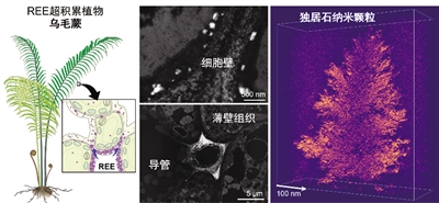 最近,我国的科学家在乌毛蕨里有了大发现:不仅找到了好多稀土元素,还第一次看到这些稀土元素在植物的小细胞之间“自己动手”,组装成了一种叫“镧独居石”的矿物。这可是全世界第一次在天然植物里看到稀土元素变成矿物的样子,这个发现能帮我们以后更环保地利用稀土资源。相关成果已于11月5日刊发在了国际有名的《环境科学与技术》杂志。
