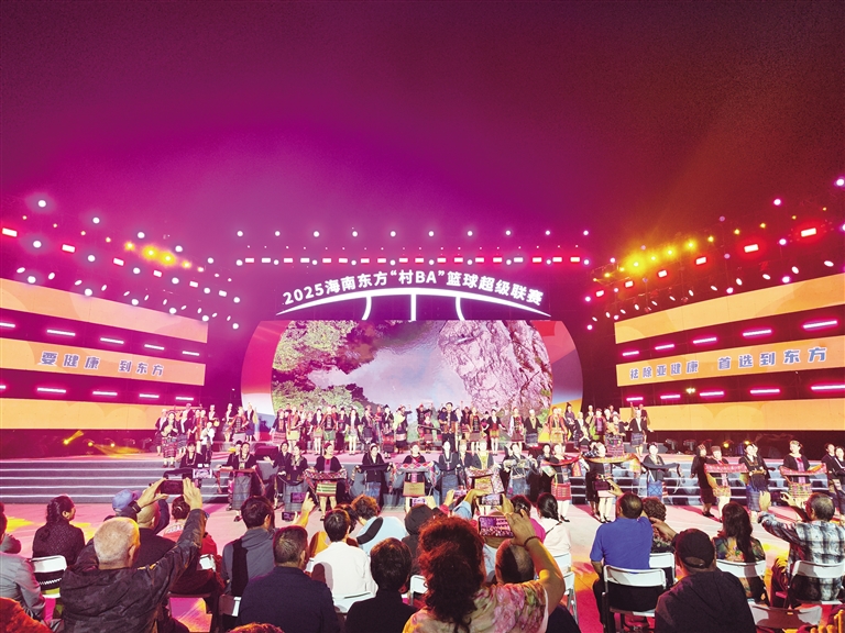 南国都市报11月11日讯(记者 鲁启兰 文/图)11月11日晚,“威特杯”2025海南东方篮球超级联赛“秀东方”群众大舞台迎来“黎韵千年·锦绣传情”主题专场。由符花金黎族歌舞传承队伍倾情呈现十三支精心编排的节目,为现场观众打造了一场深度与温度兼具的民族文化盛宴。