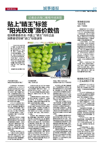 记者走访海口葡萄市场发现~~~省消费者委员会:市面上“晴王”均非正品 消费者切勿被“进口”标签误导