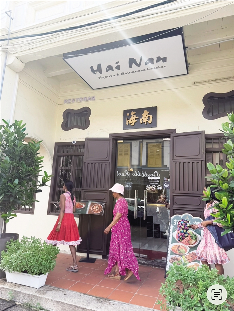 在槟城州首府城市乔治市,就有一家“海南餐馆”,主厨是马来西亚第三代华人,店内主打海南和娘惹风味融合菜,特色菜有海南芋头鸭、海南焖羊肉。