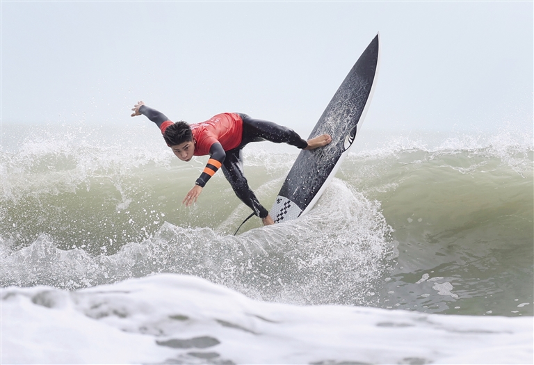 南国都市报11月13日讯(记者 陈望 实习生余丽群)11月13日,第十五届全运会冲浪项目在广东省汕头市南澳县青澳湾正式开赛。首个比赛日中,海南冲浪健儿表现强势,参赛的8名选手中有7人首战告捷,提前锁定16强资格,展现出强大的整体实力。
