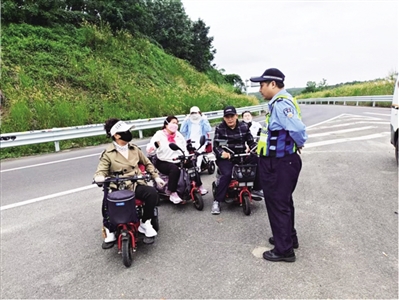 南国都市报11月13日讯(记者 梁振文)11月12日上午,有6位老人在万洋高速路上驾驶电动车。儋州交警接报后,立即安排交警安全将老人引导护送至安全路段,有效化解了道路交通安全隐患。