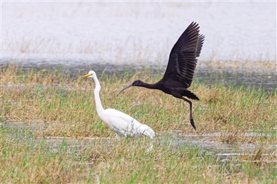 彩鹮二度“打卡”昌江海尾国家湿地公园