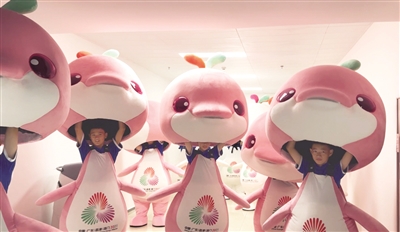 为了让“海豚”动起来更自然,孩子们每天对着镜子练习旋转、跳跃、摆臂,一天要练2000多次呢!因为没有规定吉祥物要做什么动作,孩子们就大胆地发挥,让吉祥物有了自己的个性。它们会卖力地甩头、转圈、互相追跑,还会隔着头套向观众比心,甚至在正式场合下偷偷调皮捣蛋。