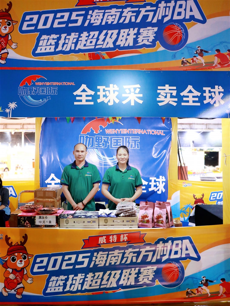 李帅是吻野(海南)食品有限公司在“村BA”主题市集的“摊主”,这间挂着“全球采 卖全球”标语、仅几平方米的摊位,正依托赛事火爆的人流让产品圈粉热销。