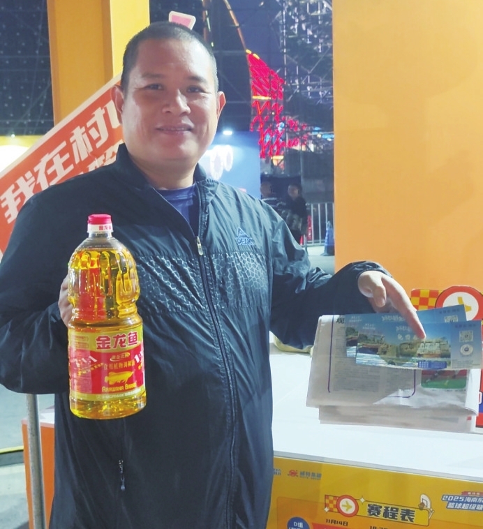 “随手一扫,没想到就中了!”11月14日晚,东方市民邓先生在海南东方“村BA”赛事服务中心举着刚兑换的金龙鱼花生油和东方鳄珍鳄鱼园门票,笑得合不拢嘴。更巧的是,隔天邓先生的妻子也以同样方式斩获同款花生油,“现在全家都动员起来啦!”