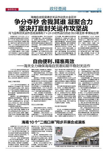 ~~~——海关全力确保海南自贸港如期平稳封关运作