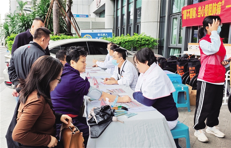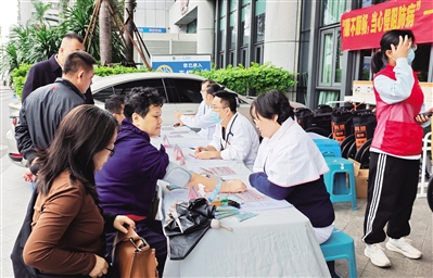 南国都市报11月19日讯(记者 王康景 文/图)“医生,我的肺部问题存在蛮久了,常咳嗽,呼吸也不顺畅,这种情况怎么缓解?”11月19日上午,在海南医科大学第一附属医院门急诊楼前,一场以“呼吸不顺畅,当心慢阻肺病”为主题的义诊活动在此展开。