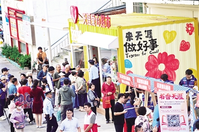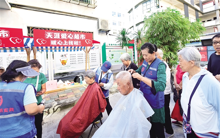 在功能设置上,天涯爱心超市精心打造四大平台。爱心循环站作为资源共享的“暖心枢纽”,募集居民闲置衣物、生活用品等物资,经专业消毒后免费赠予有需要的人;流动服务窗作为便民利民的“移动驿站”,每月定期开展“爱心流动集市”,提供理发、义诊、政策咨询等服务;天涯暖心角专为环卫工人、快递员等户外工作者设立,免费提供饮水、热饭、充电、避雨等基础服务;文明风尚台作为精神文明“传播阵地”,展示志愿服务动态,宣传先进事迹,弘扬“奉献、友爱、互助、进步”的志愿精神,引导更多群众参与公益事业。