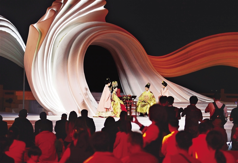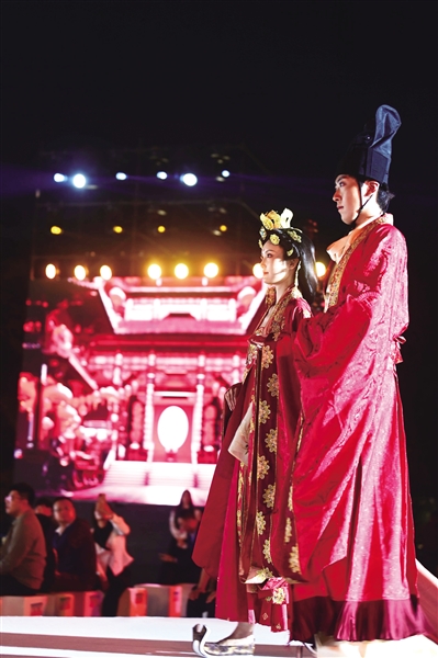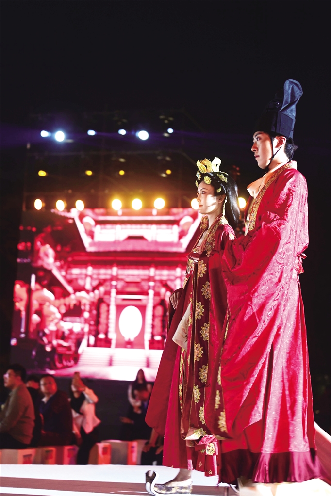 当晚,一场“传统礼赞·时尚婚典”的大型婚俗秀将开幕盛典推向高潮。演出依次呈现唐代婚俗秀、明代婚俗秀、新中式婚俗秀与西式婚俗秀四个篇章,并穿插系列主题舞蹈,生动展现不同时代与风格的婚俗文化演变。整场演出融合传统礼仪与现代风尚,为观众奉上一场贯穿东西、跨越千年的浪漫文化盛宴,赢得现场阵阵掌声。
