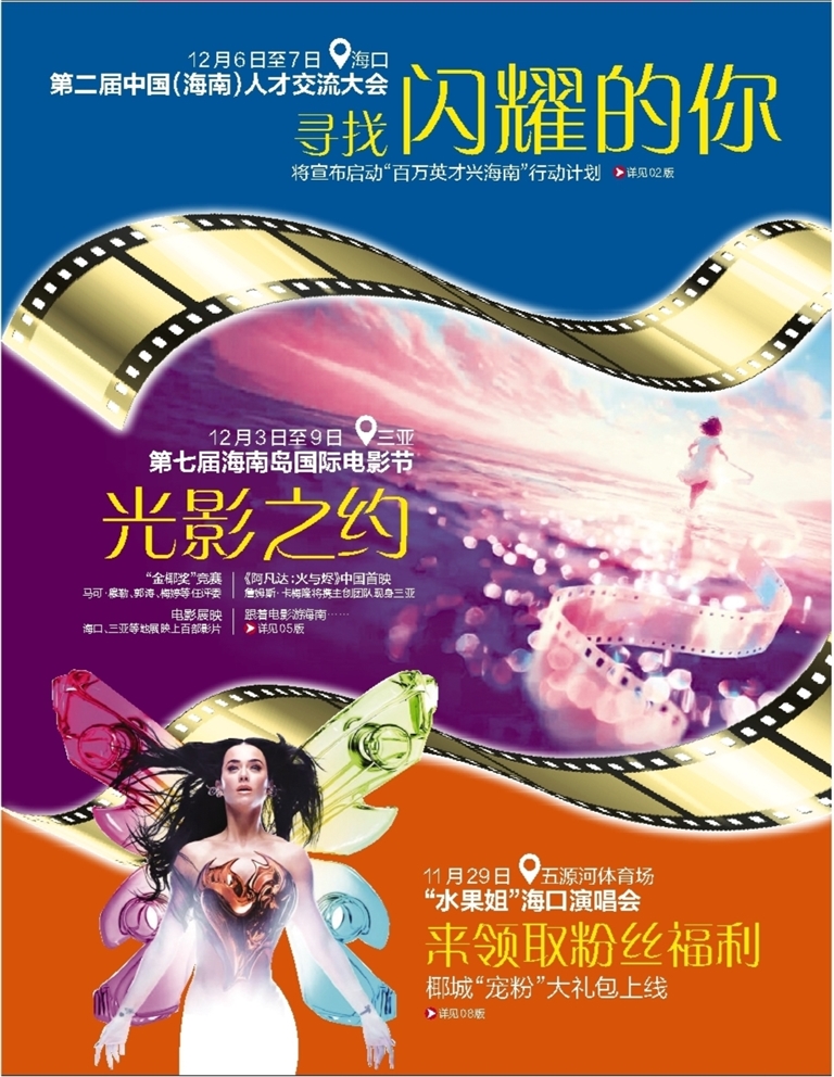 12月3日至9日 三亚 第七届海南岛国际电影节~~~“金椰奖”竞赛马可·穆勒、郭涛、梅婷等任评委 电影展映海口、三亚等地展映上百部影片 《阿凡达:火与烬》中国首映詹姆斯·卡梅隆将携主创团队现身三亚 跟着电影游海南……