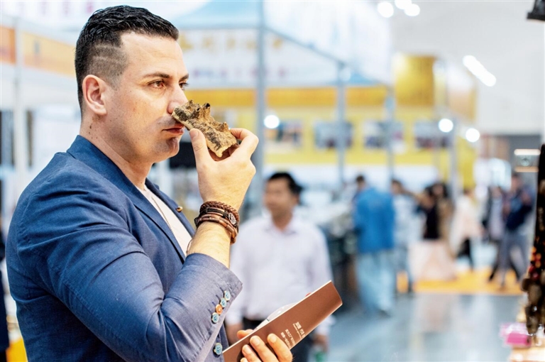 “展会为海南沉香与黄花梨搭建了国际化展示平台,我非常期待与全球藏家深入交流,共推行业繁荣发展。”中国沉香文化博物馆馆长郑鹏建说。行万里路,寻香不息,郑鹏建钟爱海南沉香:“气味如梅花香、果香般清雅微带甜香,含油量十足,香气幽远耐久,尾香有余味而无焦气。”他清晰记得古代文人曾评价海南沉香,“冠绝天下,谓之海南沉,一片万钱”。