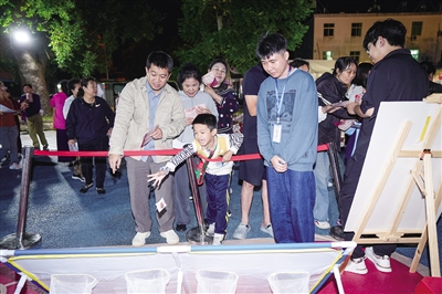 傍晚6点,大院里的游园会彻底“点燃”小镇。文明市集的摊位前,“垃圾分类小能手”区排起长队,村民们把写着“塑料瓶”“果皮”的沙袋投进对应网里;“文明盲盒抽抽抽”前,村民们积极抽题答题,争当“文明知识先锋”……活动现场精彩纷呈,热闹非凡。