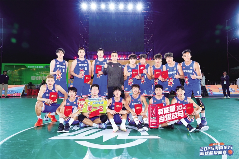 南国都市报11月29日讯(记者 梁振文)11月29日,“威特杯”2025海南东方篮球超级联赛(简称:海南东方“村BA”)进入第四周的比赛。在当晚进行的大学生邀请赛中,海南大学队通过加时赛,以76:67艰难战胜卫冕冠军海南热带海洋学院队,夺得冠军。