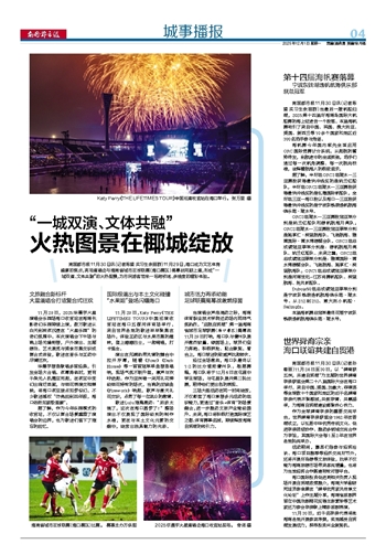 南国都市报11月30日讯(记者陈望 实习生余丽群)11月29日,海口成为文艺体育盛宴的焦点,两场演唱会与海南省城市足球联赛(海口赛区)揭幕战同期上演,形成“一城双演、文体共融”的火热图景,为市民游客带来一场跨领域、多维度的精彩体验。